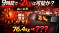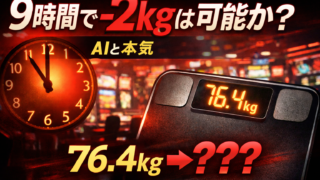 15時から24時までの9時間で2kg減量は可能なのか?76.4kgからスタートし、ChatGPTの指示通りに仕事中ダイエットを実践。水分操作・歩数・利尿戦略でどこまで体重は落ちるのかをリアルに検証します。