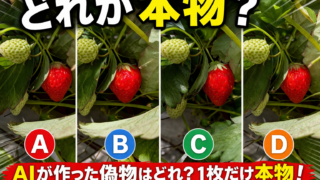 挑戦 【激ムズ】どれが本物?AIが作った“いちご画像”がリアルすぎて見分け不可能w いちご狩りで撮影した写真にAIで作った画像を混ぜてみました。4枚のうち本物はどれ?あなたは見抜ける?リアルすぎるAI画像のクオリティに驚愕…。 2026.04.05 挑戦