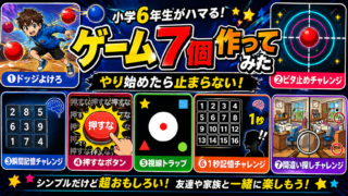 挑戦 色んなゲーム作ってみた いろんなミニゲームを実際に作って遊べるようにしてみました。たぬきたたき、金魚すくい、輪投げ、PK、神経衰弱など、スマホでも気軽に楽しめるゲームをまとめて紹介します。 2026.04.25 挑戦