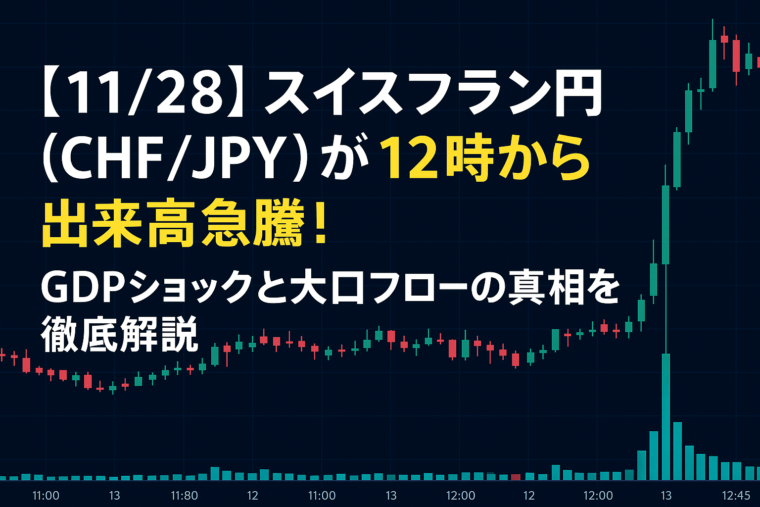 FX 【11/28速報】スイスフラン円(CHF/JPY)が12時から出来高急騰!GDPショックと大口フローの真相を徹底解説|15分足データで完全証明