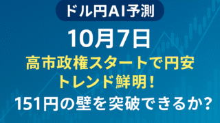 FX 【10月7日ドル円AI予測】高市総裁就任で円安トレンド加速!1時間ごとの為替シナリオ完全版 2025年10月7日(火)のドル円をAIが徹底分析。 高市総裁誕生による円安加速、サンデードル円の影響、米政府機関閉鎖による指標遅延など最新情報を反映。 7時~26時までの1時間ごとの方向性と押し目・戻り売りポイントを完全解説。 FXトレーダー必見の最新AI為替レポート! 2025.10.07 FX
