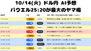 FX 【10/14(火) ドル円 7:00–30:00】要人発言ラッシュで上下振れに警戒/パウエル25:20が最大のヤマ場 10/14のドル円は7:00–30:00の時間割で予測。英雇用・独/欧ZEW・米大手銀決算、そして25:20パウエル発言が最大注目。発言前後の上下振れに要警戒。 2025.10.14 FX
