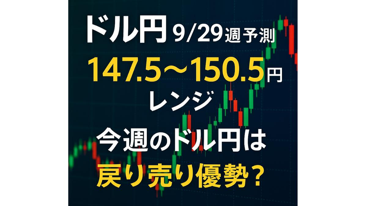 2025年9月29日週のドル円は、147.5円~150.5円のレンジで推移すると予測されます。方向性としては「やや下目線」、つまり戻り売り優勢の展開になりやすいと見られます。