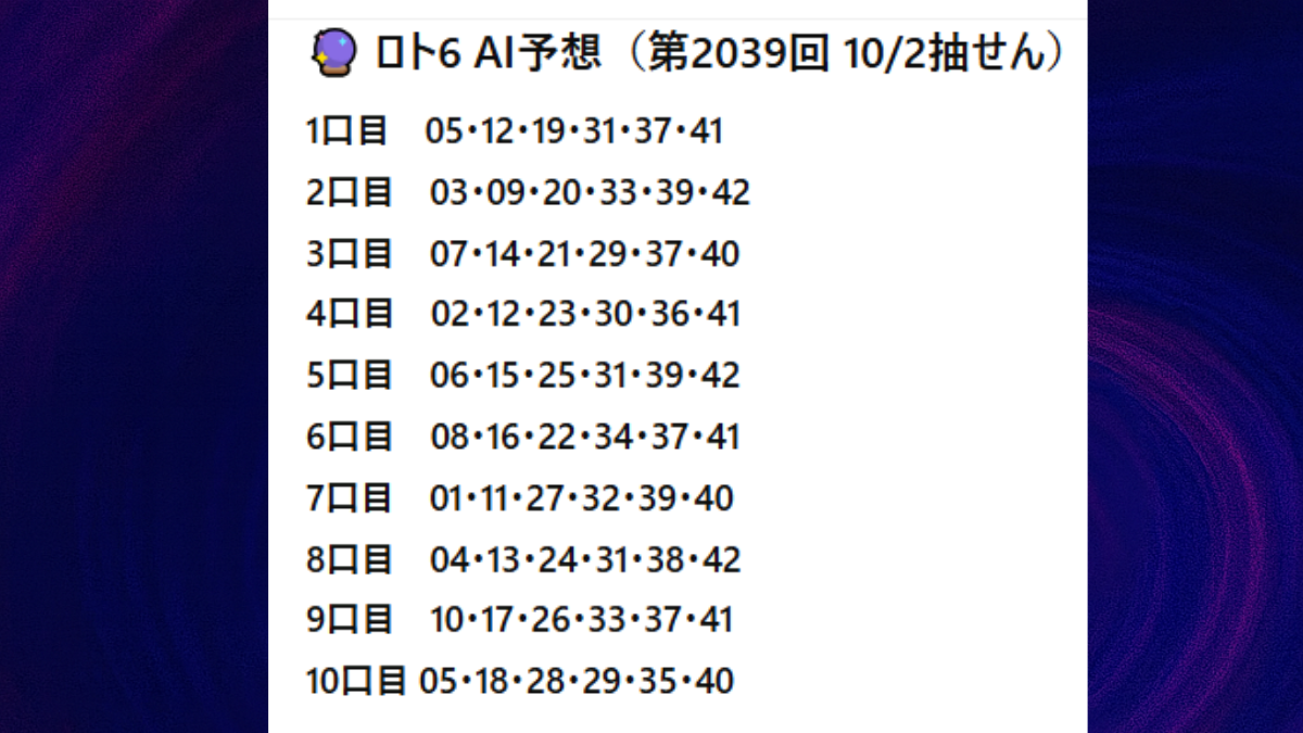 🔮 ロト6 AI予想(10口)