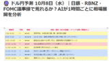 - ニュース・指標発表:予想外の米国・日本の経済指標、FRB/日銀要人発言などで大きく変動する可能性あり。
