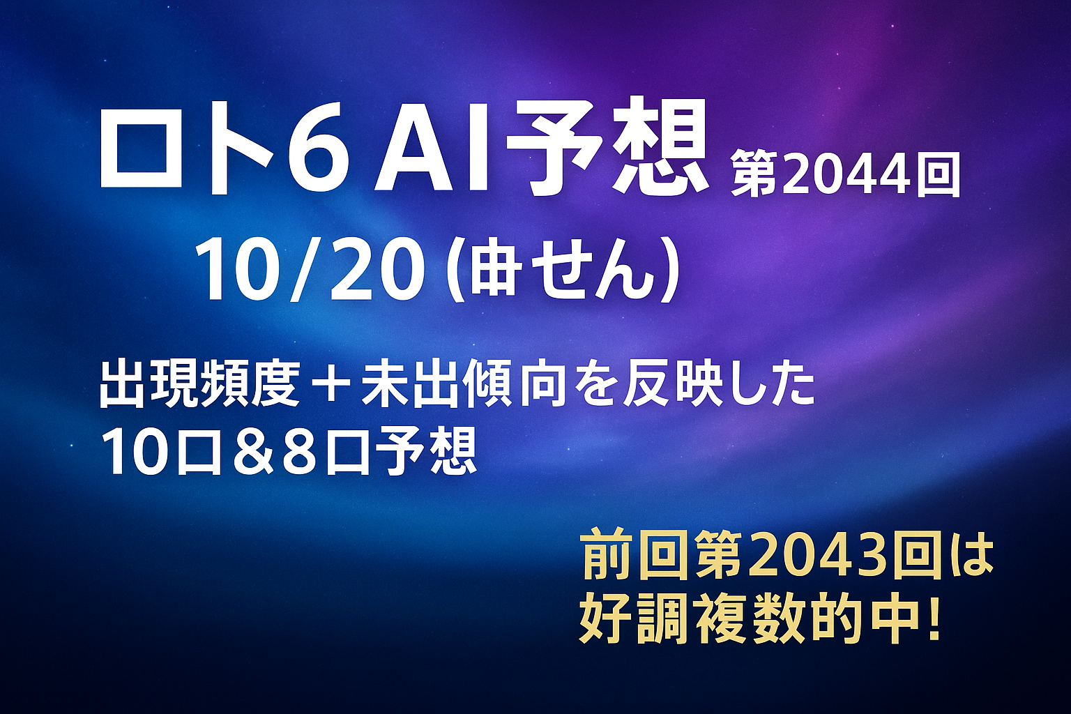 🔮 ロト6 AI予想(第2044回|2025年10月20日 抽せん)