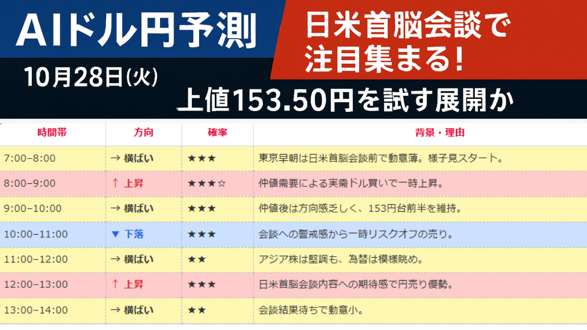 💹 【AIドル円 10月28日(火) 7:00〜30:00 予測】