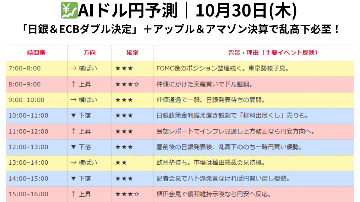 💹 【AIドル円 10月30日(木) 7:00〜30:00 予測】