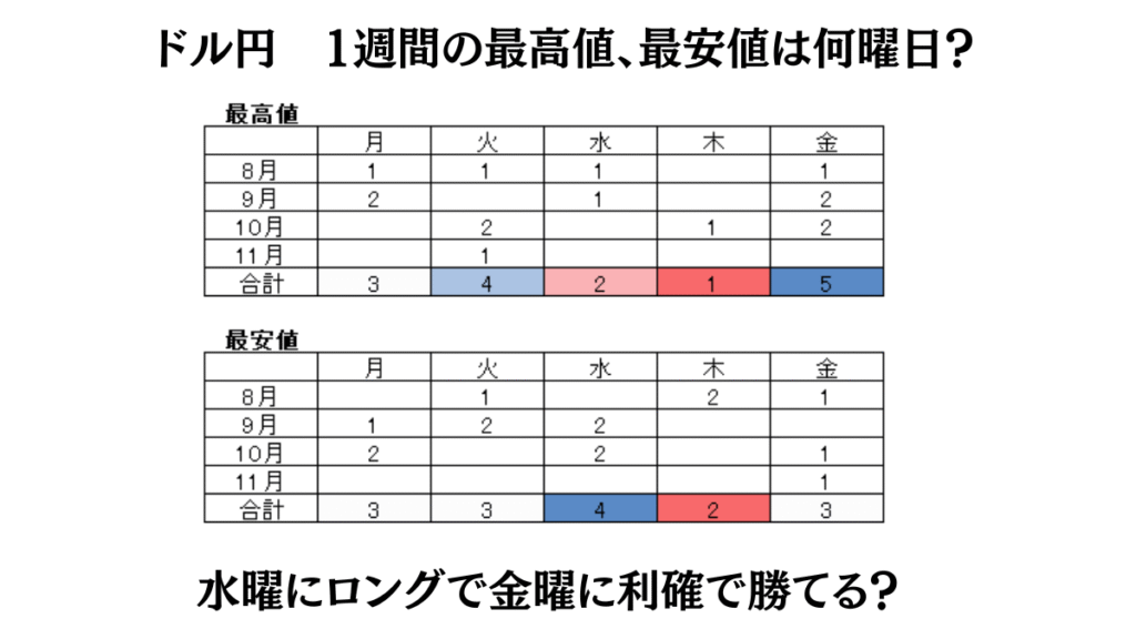 【FX】ドル円 1週間の最高値、最安値は何曜日?