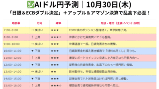 FX    💹AIドル円予測|10月30日(木)「日銀&ECBダブル決定」+アップル&アマゾン決算で乱高下必至!